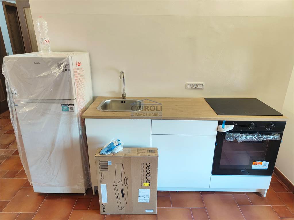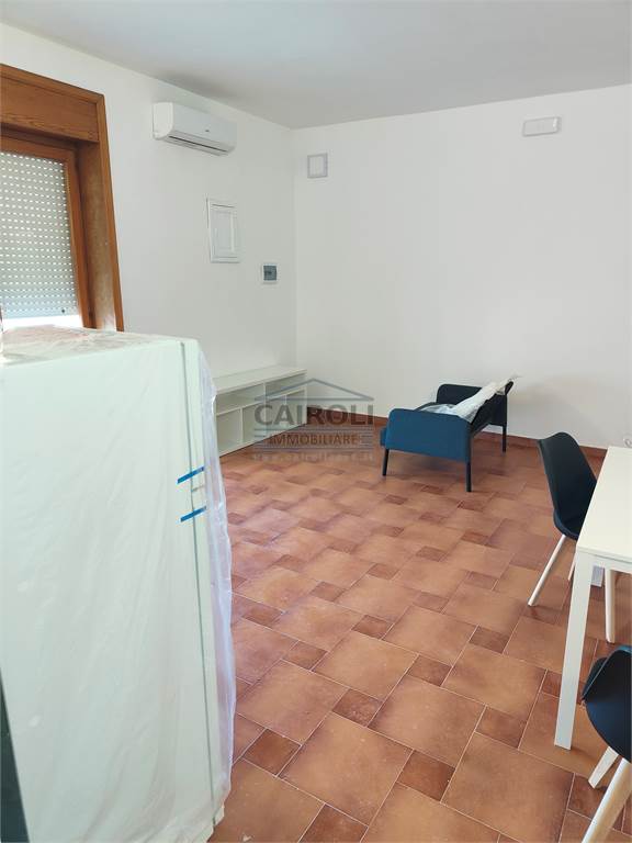 Appartamentino al primo piano senza ascensore composto da ingressino soggiorno tinello, camera da letto matrimoniale e bagno. Due balconi. (Primo balcone dalla parte del soggiorno tinello e l'altro dalla camera da letto matrimoniale). Immobile è molto luminoso. Riscaldamento autonomo con climatizzatori. Terrazza ampia condominiale. L'immobile è stato ristrutturato da poco e i mobili sono nuovi. Immobile vicino al piazzale rudiae dove sono presenti varie attività commerciali. Cucina a induzione e riscaldamento con climatizzatori. Luminosissimo. Si affitta a single o coppia referenziata. L'appartamento ha l'utenza della corrente elettrica già attiva. No animali. Due climatizzatori (uno nel soggiorno tiello e l'altro in camera da letto).