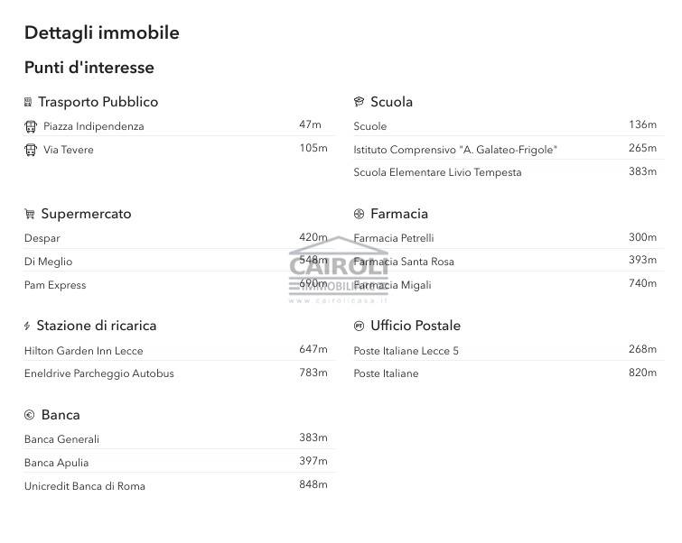 Cairoli immobiliare presenta immobile con incarico in esclusiva. L'appartamento in vendita nel comune di Lecce (LE) è composto da ingresso disimpegno, tre camere, cucina semi abitabile + Bagno. Cantina deposito a piano terra. E' situato nei pressi di piazza Indipendenza (quartiere santa rosa), in una zona servita da tre supermercati situati a circa 300 metri di distanza. L'immobile di circa 100 mq dispone di 4 vani per complessivi più bagno. Due balconi e doppio affaccio. Dotato di parcheggio e di ampi spazi verdi circostanti, rappresenta una soluzione abitativa ideale per chi desidera vivere in un contesto tranquillo e ben servito. Nel 2023 hanno eseguito ristrutturazione e l'intero condominio ha beneficiato del 110. Attualmente locato con buona possibilità di essere liberato e consegnare l'immobile libero in virtù di contratti di locazione a scadenza entro 5 mesi. In seguito alla ristrutturazione per il 110 sono stati sostituiti infissi, elementi radianti, caldaia. Prezzo trattabile.....