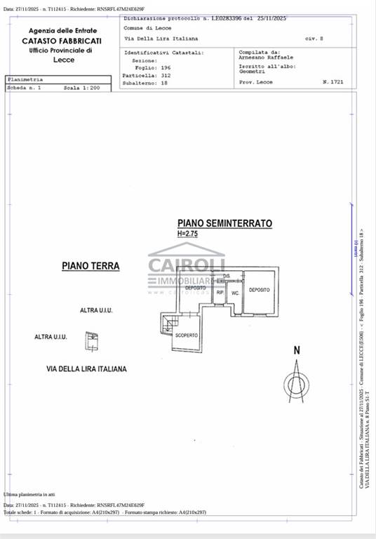 L'immobile si estende su una superficie di 50 mq e comprende due vani ben distribuiti. La sua disposizione interna favorisce un'ottima luminosità. L'immobile censito come uso deposito attualmente non ha possibilità di cambio d'uso catastale ne altro.